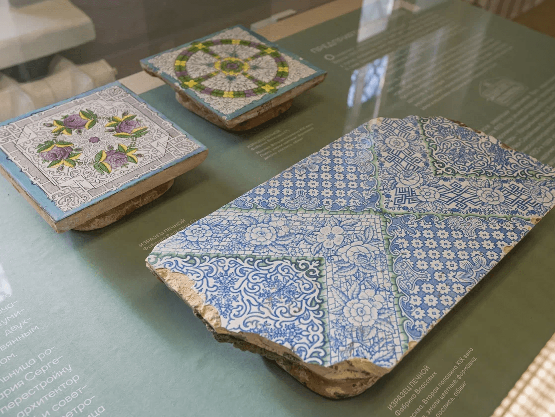 Проект представляет изделия строительной керамики XIX века. В коллекции можно увидеть изразцы, черепицу, напольную и облицовочную плитку.