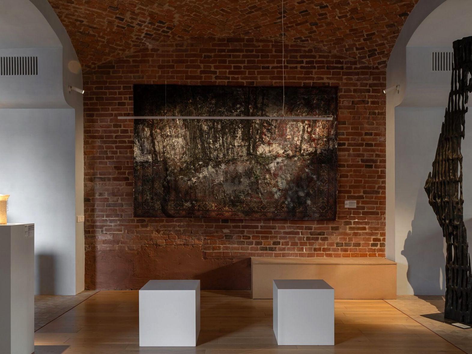Эта выставка объединяет сразу два творческих направления, в которых работает мастер Олег Емельянов: деревянную скульптуру и искусство гобелена. По замыслу организаторов, дерево символизирует связь с предками, память и традиции, а нить, из которой создаются гобелены, служит метафорой жизни.