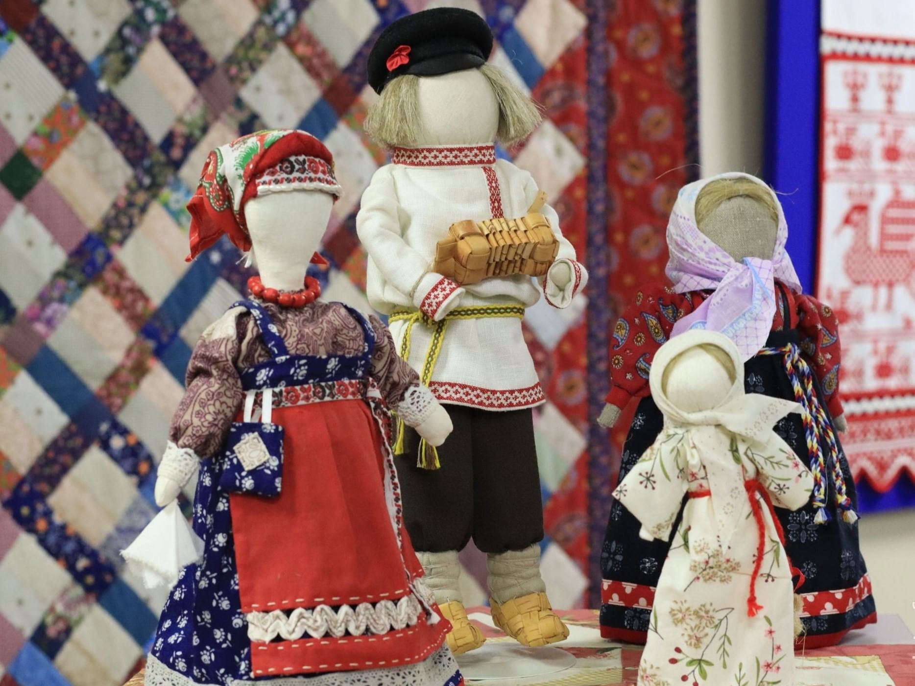 В экспозицию вошло более 300 предметов, созданных мастерами народного искусства: от резных и расписных прялок до знаменитых вологодских кружев, композиций из бересты и ивовой лозы, детских игрушек и традиционных кукол.